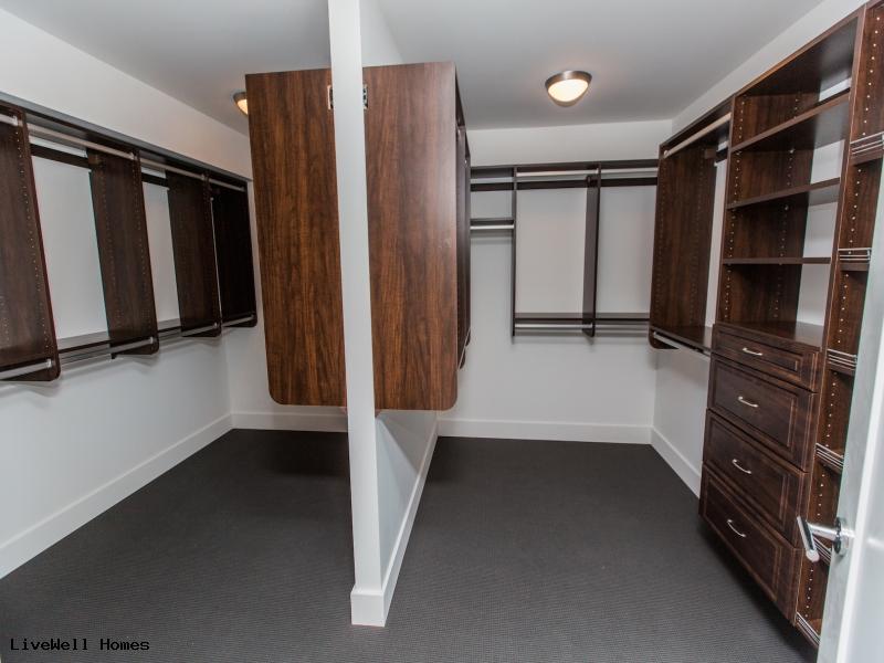 · Large his and hers closet in master with custom cabinets.